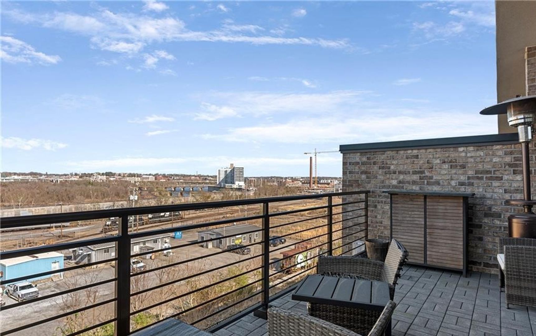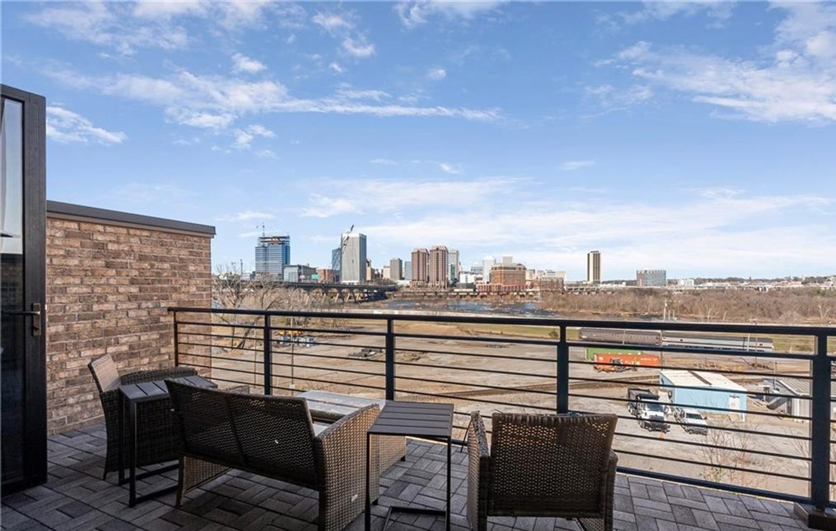 Step outside to the private rooftop patio and take in panoramic views of the James River and Downtown Richmond—an exceptional outdoor living space.