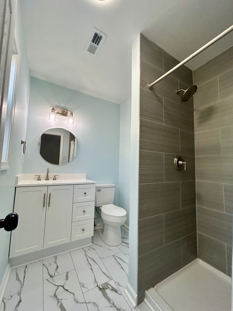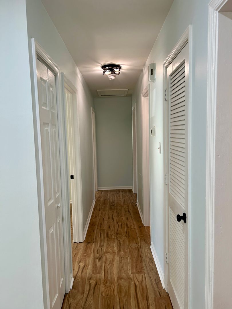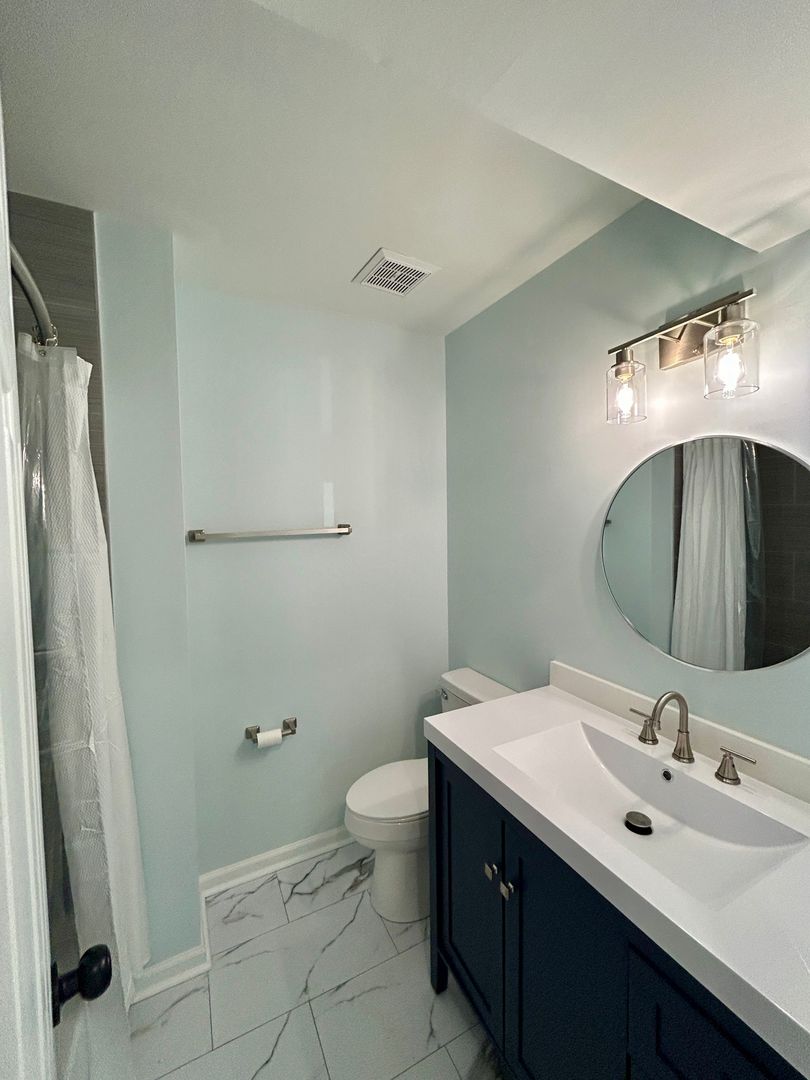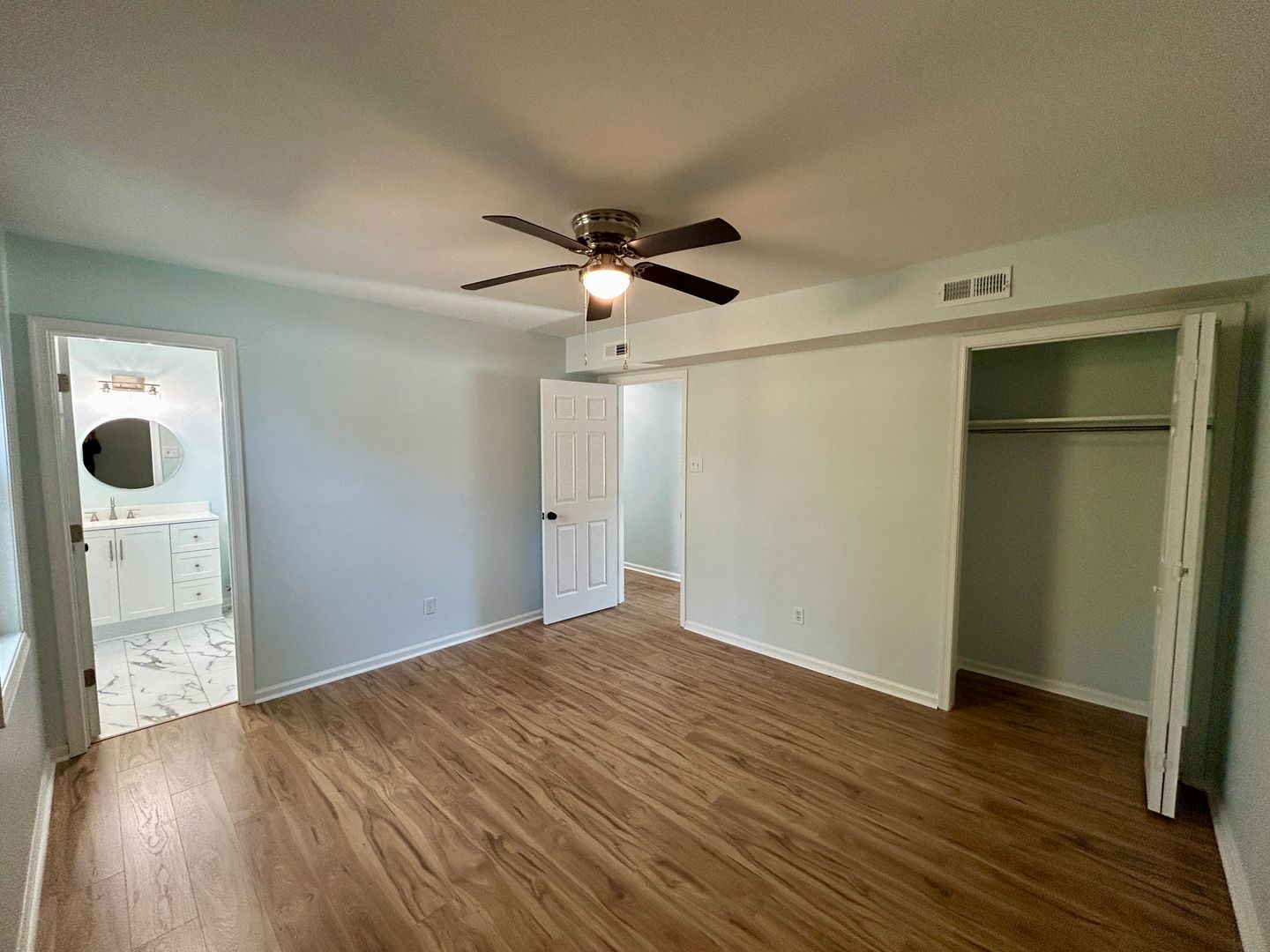 The spacious primary suite includes a new ceiling fan and a beautifully remodeled en-suite bath. Two additional bedrooms are served by another fully renovated full bathroom with modern finishes.